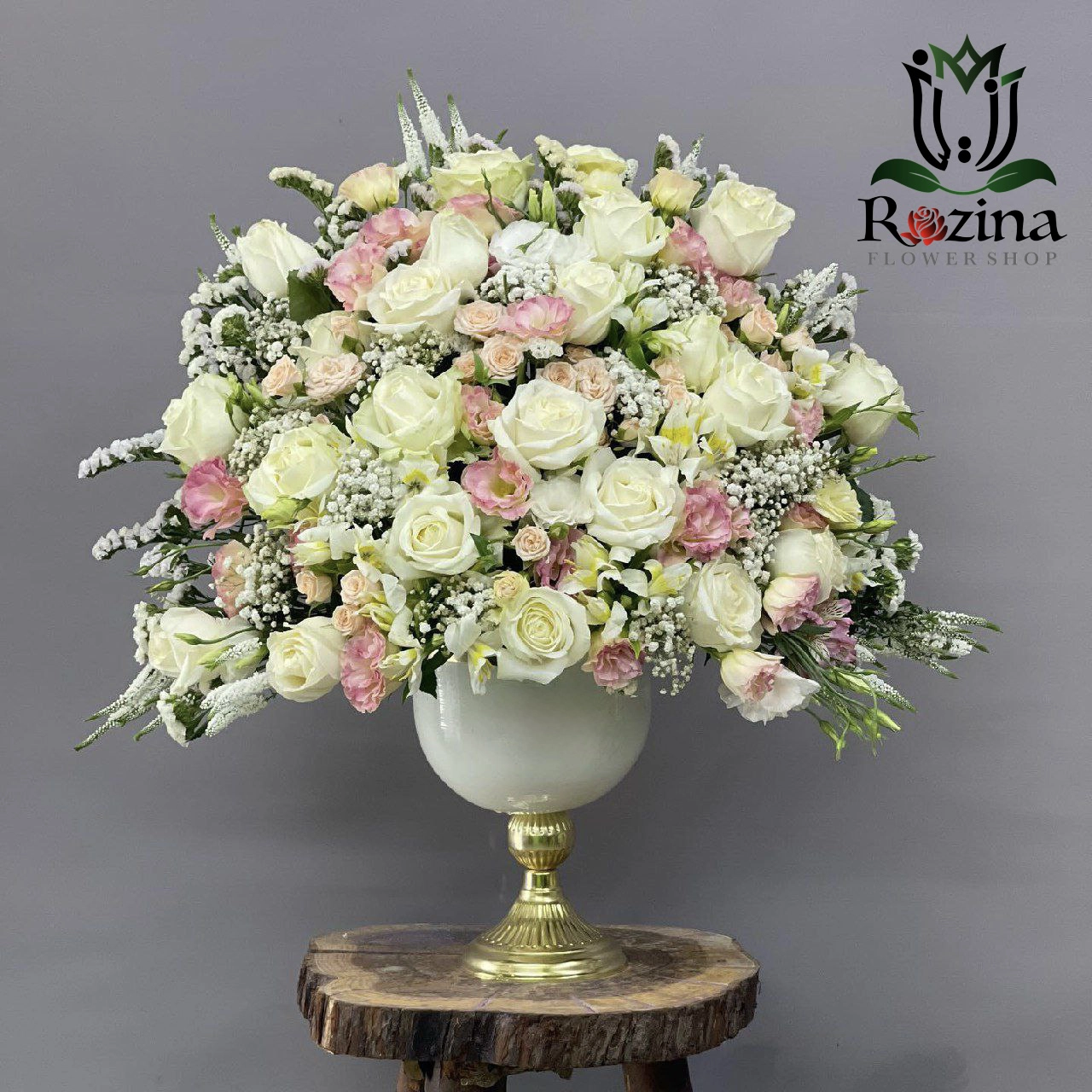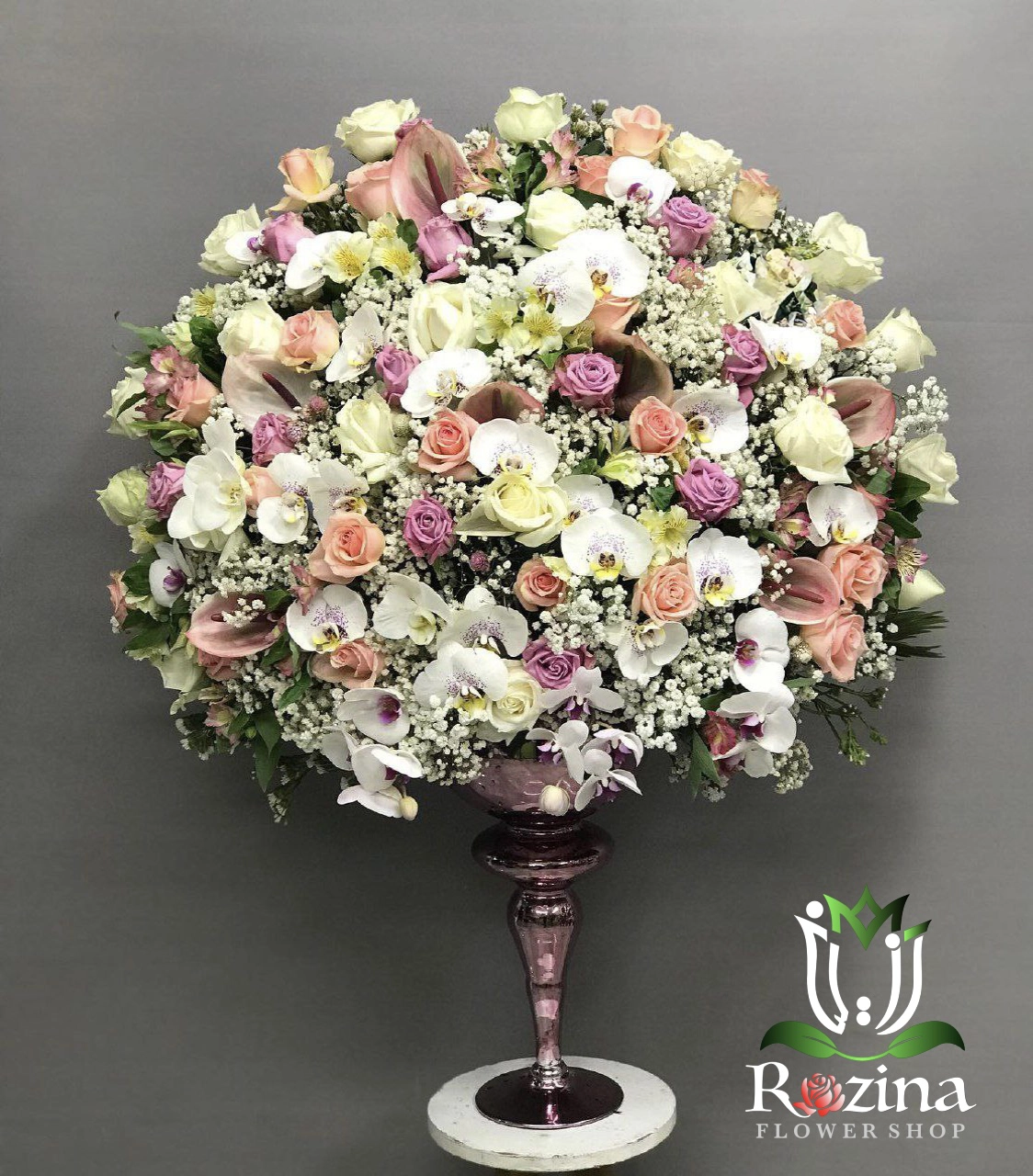 از گلهایی مانند آنتریوم، رز، رز مینیاتوری، لیلیوم، ارکیده، میخک استفاده میشود.